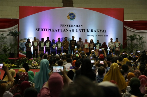 Sertipikat tanah diserahkan secara langsung oleh Presiden kepada 12 orang perwakilan penerima sertipikat. Penyerahan sertipikat dihadiri oleh penerima sertipikat tanah yang berasal dari 3 Kabupaten/Kota di Provinsi Jawa Timur, terdiri dari Kota Malang sebanyak 1.128 orang, Kabupaten Malang sebanyak 4.000 orang, Kota Batu sebanyak 25 orang.