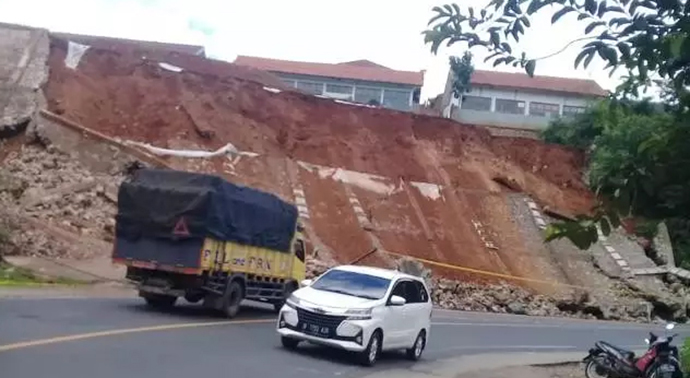 Viralnya berita di media sosial terkait longsornya tebing di Garut Jawa Barat dibenarkan oleh Badan Nasional Penanggulangan Bencana (BNPB). Longsornya tebing setinggi 14 meter dan Panjang 45 meter terjadi sebagai dampak dari gempa bermagnitudo 4,9 SR tadi pagi, Jumat (21/2) pada 07.57 WIB.