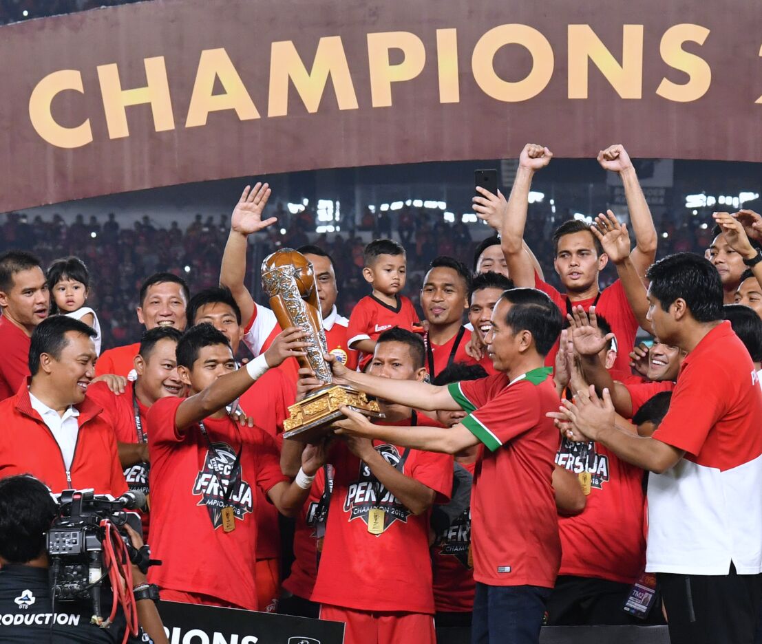 JAKARTA — Presiden Joko Widodo menyerahkan Piala Presiden kepada kapten Persija Jakarta Ismed Sofyan setelah Persija Jakarta mengalahkan Bali United dengan skor 3-0...