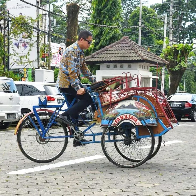 YOGYAKARTA — Menteri Energi dan Sumber Daya Mineral (ESDM) Ignasius Jonan mengaku terkesan dengan becak listrik buatan mahasiswa Universitas Gadjah Mada (UGM), Yogyakarta....