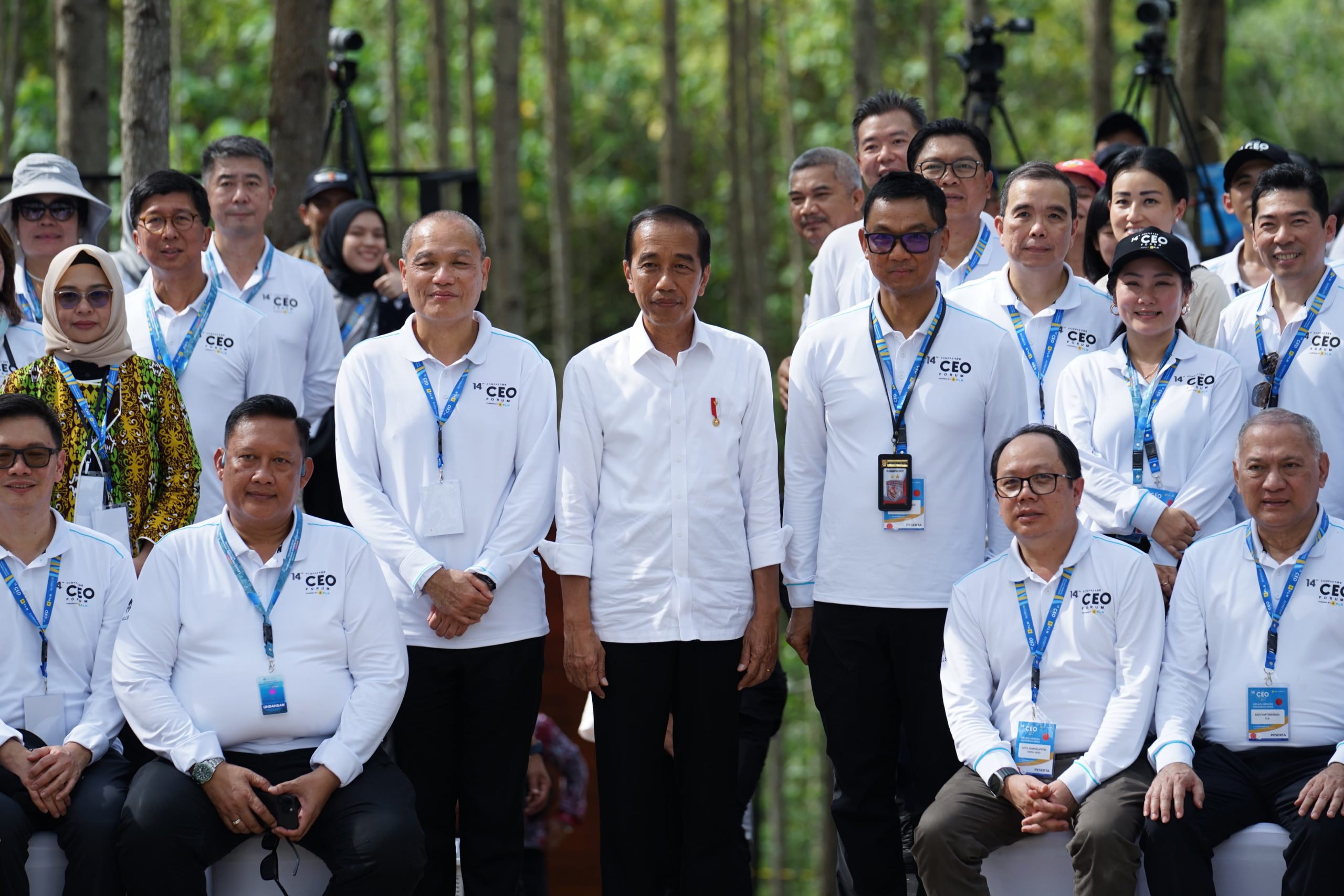 Presiden Joko Widodo bersama Direktur Utama PLN Darmawan Prasodjo dan 99 Chief Executive Officer (CEO) yang memiliki bisnis di Indonesia melakukan kunjungan ke Ibu Kota Nusantara (IKN), Kamis (01/11). Kunjungan tersebut dilakukan untuk melihat pembangunan IKN yang menjadi bagian dari rangkaian Kompas100 CEO Forum 2023.