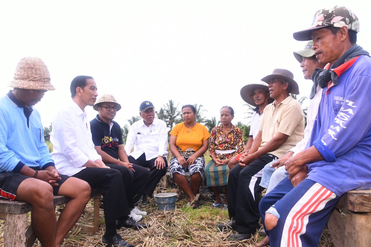 Dalam peninjauannya, Presiden Jokowi menyusuri pematang sawah menuju lokasi pekerjaan dan berdialog dengan para petani. Presiden Jokowi kemudian duduk di dingklik dan berbincang dengan Pekaseh selaku ketua P3A yang mengatur sistem irigasi dan para petani di wilayahnya.