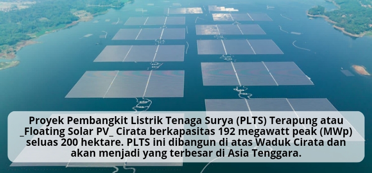 Proyek Pembangkit Listrik Tenaga Surya (PLTS) Terapung atau Floating Solar PV Cirata akan diresmikan langsung oleh Presiden Joko Widodo pada Kamis, (9/11). Proyek PLTS Terapung Cirata ini akan menjadi PLTS terapung terbesar di kawasan Asia Tenggara.