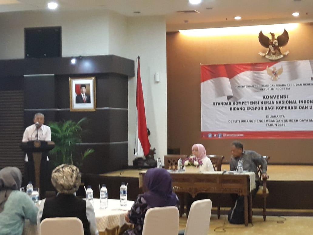 Hal itu disampaikan oleh Sekretaris Deputi bidang SDM Kementerian Koperasi dan UKM (Kemenkop dan UKM), Talkah Badrus, dalam sambutannya pada acara Konvensi Rancangan Standar Kompetensi Kerja Nasional Indonesia (RSKKNI) dan Rancangan Kerangka Kualifikasi Kerja Nasional Indonesia (RKKKNI) Bidang Ekspor pada Koperasi dan UKM, Jakarta, Senin (10/12). Melalui peninjauan ulang SKKNI dan KKNI yang berlaku saat ini diharapkan akan melahirkan Standar yang baru yang dapat memudahkan KUMKM dalam menembus pasar ekspor. Hadir dalam acara tersebut Asdep Standardisasi dan Sertifikasi SDM KUMKM Kemenkop dan UKM, Retno Endang Prihantini dan Ketua Tim Perumus RSKKNI dan RKKKNI, Prijadi Atmaja.