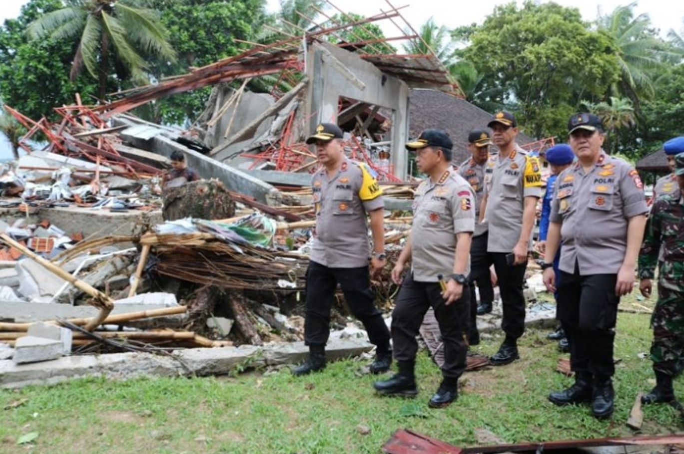 Kapolri datang ke lokasi bencana untuk melihat dari dekat dampak kerusakan akibat tsunami yang menggempur wilayah itu pada Sabtu (22/12/18) malam.