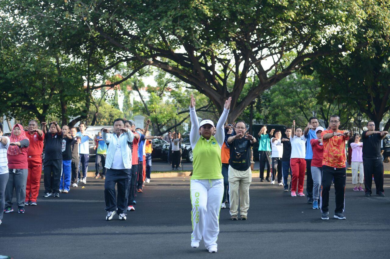 JAKARTA — Ada pemandangan berbeda di Istana Negara, Jakarta Pusat, Jumat pagi beberapa waktu lalu. Sekitar 300 orang berpakaian olah raga memenuhi halaman Istana.