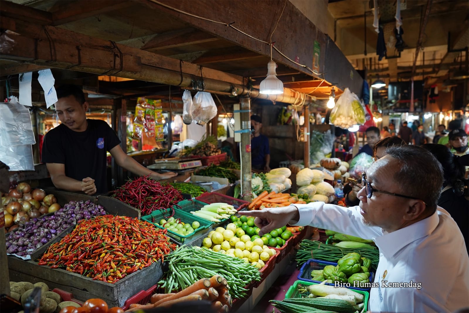 Dalam kesempatan tersebut, menteri sempat berdialog dengan sejumlah pedagang di pasar tersebut terkait ketersediaan dan harga bahan pokok. Berdasarkan pemantauan, harga beras medium tercatat Rp13.000/Kg, beras premium Rp14.000/Kg, beras Bulog Rp10.900/Kg, gula pasir Rp17.000/Kg, minyak goreng curah Rp13.500/liter, minyak goreng premium Rp19.000/liter, minyak goreng Minyakita Rp15.000/liter dan tepung terigu, Rp12.000/kg, daging sapi Rp150.000/Kg, daging ayam ras Rp36.000/Kg, telur ayam ras Rp26.000/Kg, cabai merah keriting, Rp80.000/Kg, cabai merah besar Rp80.000/Kg, cabai rawit merah Rp110.000/Kg, bawang merah Rp40.000/Kg, dan bawang putih Rp45.000/Kg.