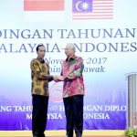 Turut hadir mendampingi Presiden, Menko PMK Puan Maharani, Menlu Retno Marsudi, Menkumham Yasonna Laoly, Mendikbud Muhadjir Effendy, Menaker Hanif Dhakiri, Mendag Enggartiasto Lukita, KSP Teten Masduki dan Dubes Indonesia untuk Malaysia Rusdi Kirana. (kn)
