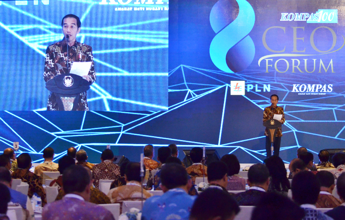 “Jangan campur aduk, jangan sampai Kadin juga nyambi politikus misalnya. Ini menjadi campur-aduk nanti, ini pengusaha atau politikus,” kata Jokowi saat berpidato pada Pembukaan Kompas 100 CEO Forum di Hotel Raffles, Kuningan, Jakarta, Rabu (29/11) pagi, sebagaimana rilis Humas Sekretariat Kabinet.