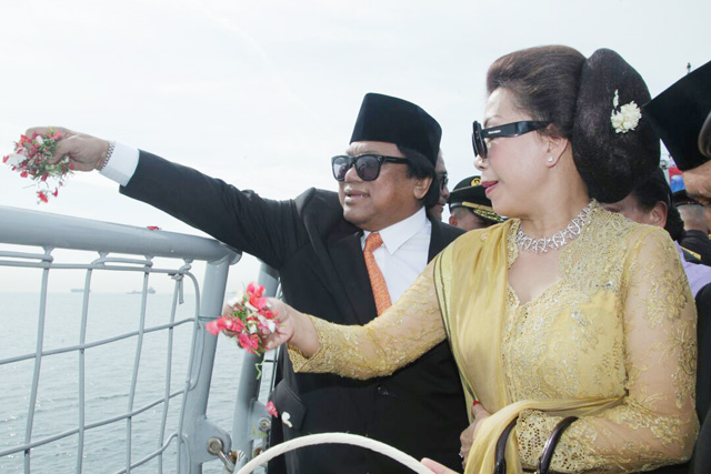 JAKARTA — Memperingati Hari Pahlawan, Ketua DPD RI Oesman Sapta memimpin upacara tabur bunga di laut Jakarta. Upacara digelar di geladak Kapal Republik Indonesia (KRI) dr. Soeharso 990 di perairan sekitar Pulau Damar Kepulauan Seribu, Jumat (10/11).