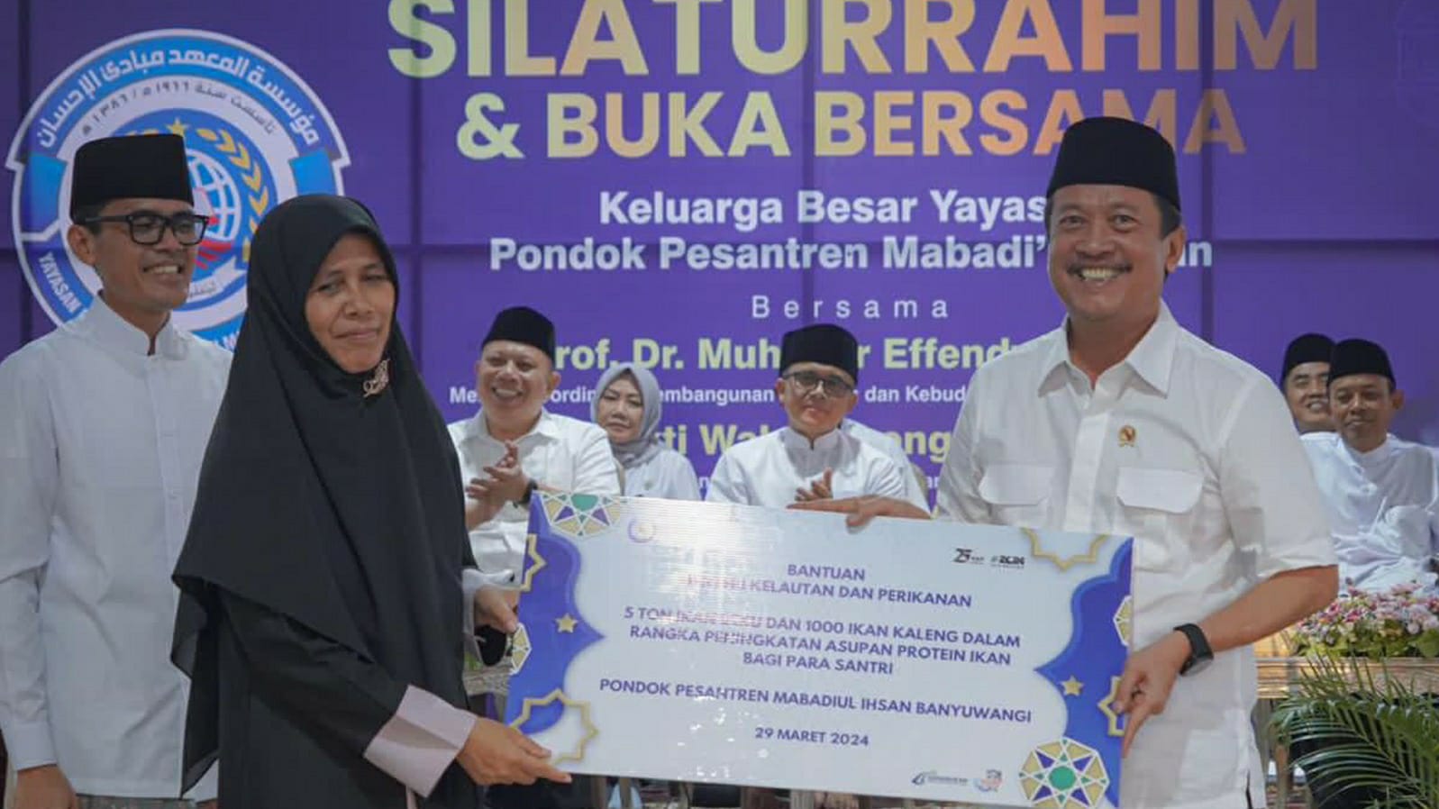 Kementerian Kelautan dan Perikanan (KKP) membagikan 15 ton ikan dan 3000 ikan kaleng ke beberapa pesantren di wilayah Jawa Timur dan Jawa Tengah.