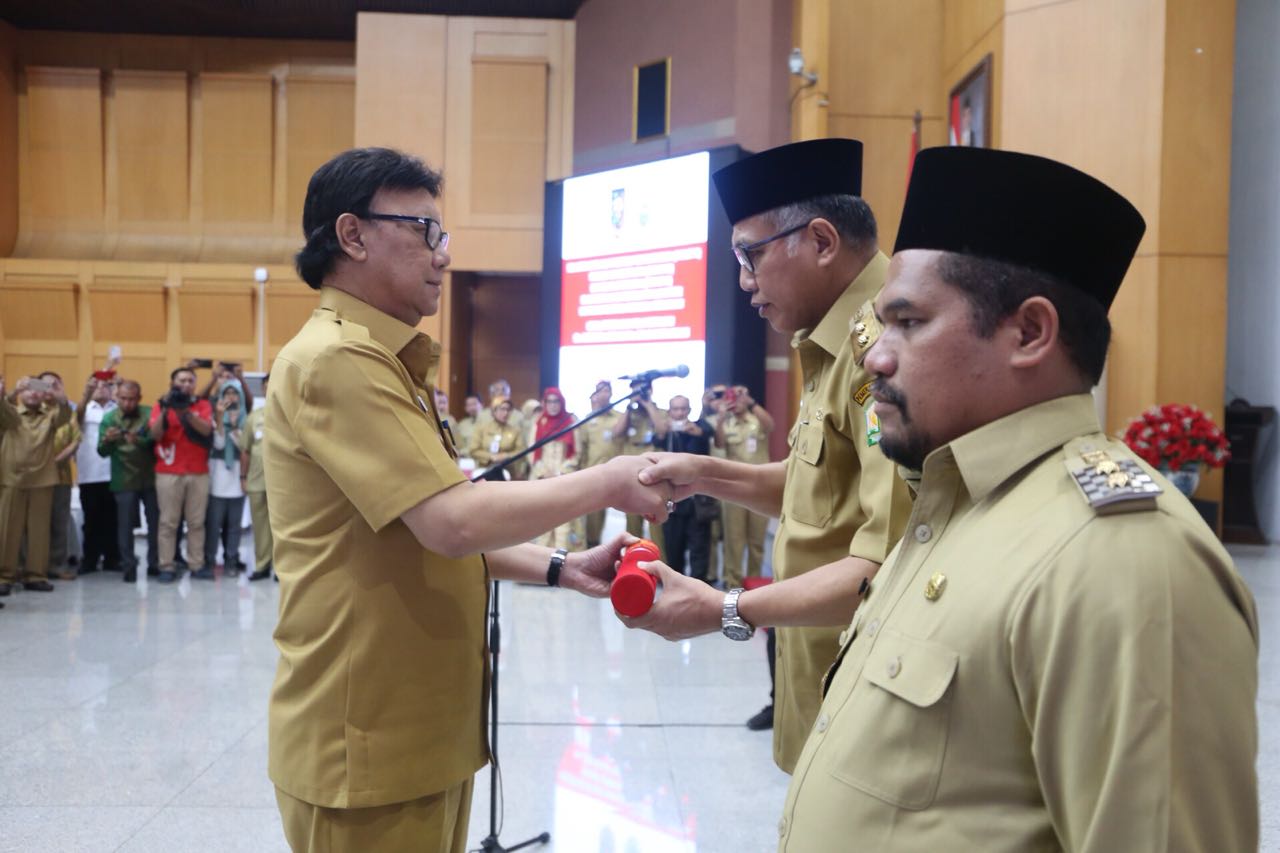 Penyerahan SK Plt keduanya berlangsung di Gedung Sasana Bhakti Praja Kemendagri, Jl Medan Merdeka Utara, Jakarta Pusat, Senin (9/7/18). Serah terima didasarkan atas Undang-Undang Nomor 23 Tahun 201 tentang Pemerintah Daerah terkait jabatan Plt oleh Wagub dan Wabup apabila Gubernur dan Bupati berhalangan sementara.