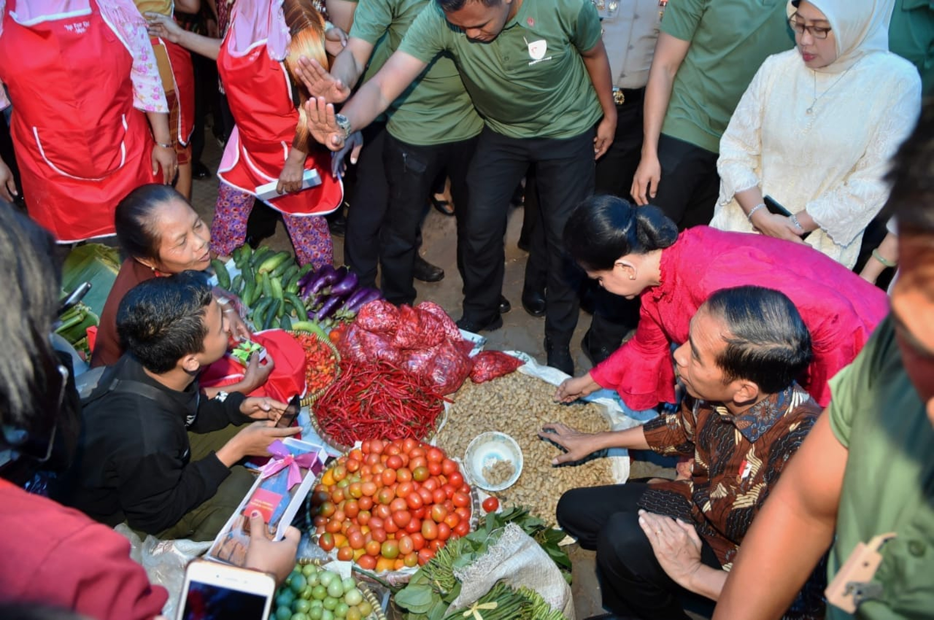 Setelah Presiden dan Ibu Iriana berkeliling pasar, beberapa warga tampak antusias mengabadikan momen di depan mobil berpelat “Indonesia 1”. Maklum, tidak setiap hari mereka bisa melihat dari dekat mobil itu.