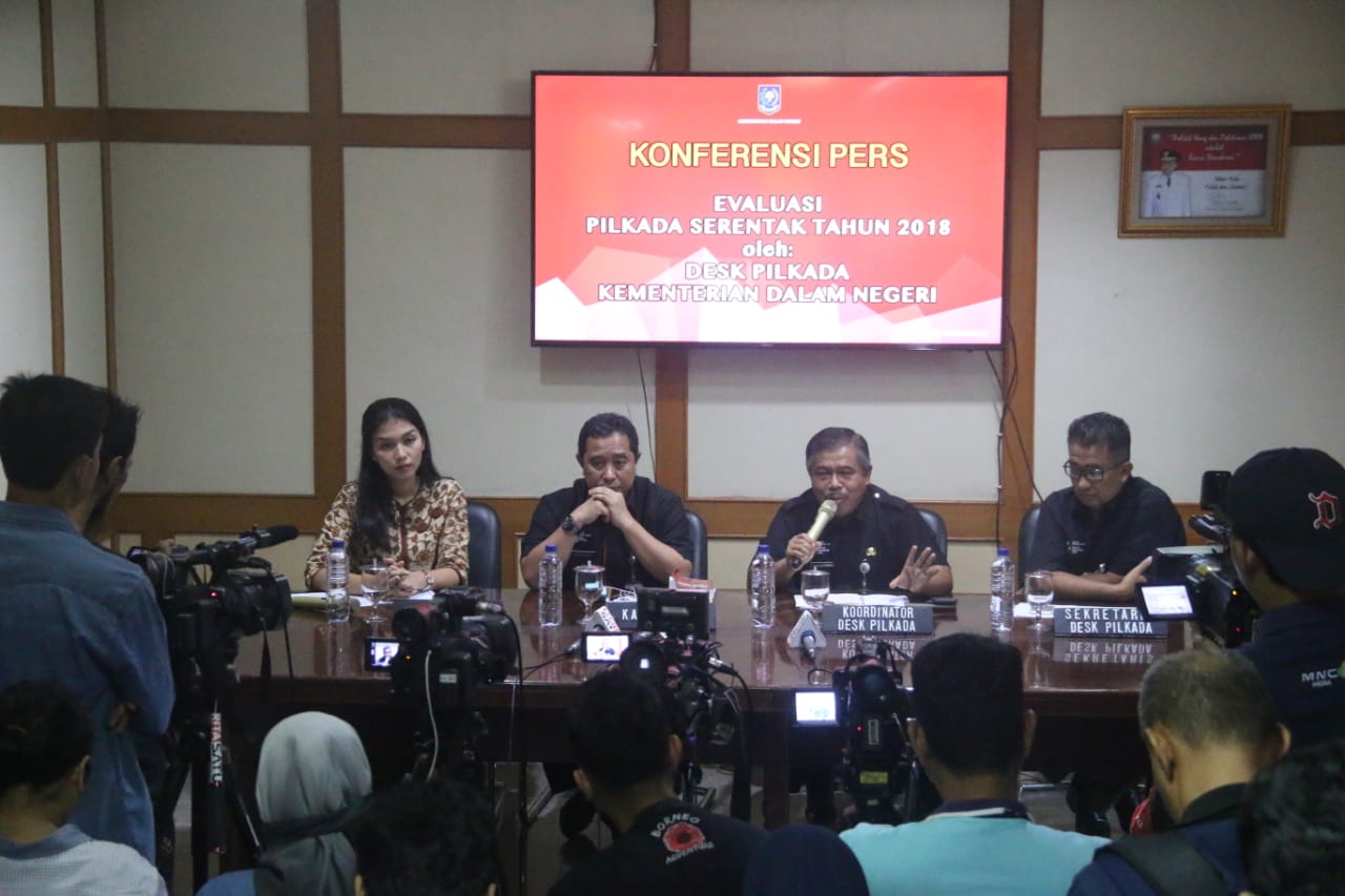 Hadir dalam konferensi pers yang dipandu moderator Astri Megatari tersebut, Kepala Pusat Penerangan (Kapuspen) Kemendagri Bahtiar dan Sekretaris Desk Pilkada Akmal Malik yang juga Sekretaris Direktorat Jenderal Otonomi Daerah.