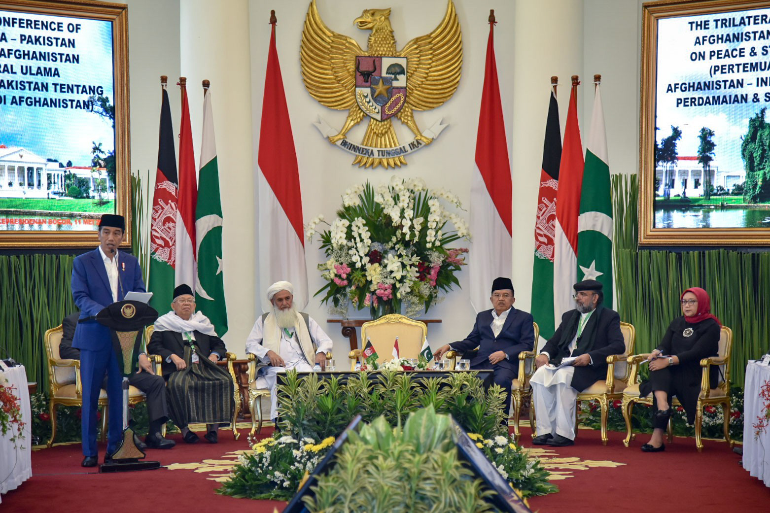 Pembukaan Pertemuan Trilateral Ulama Indonesia, Afghanistan, dan Pakistan itu dihadiri oleh Wakil Presiden Jusuf Kalla, Ketua Majelis Ulama Indonesia (KH) Ma’ruf Amin, Menko Polhukam Wiranto, Menteri Luar Negeri (Menlu) Retno Sumardi, dan Menteri Agama Lukman Hakim Saifuddin. (kn)