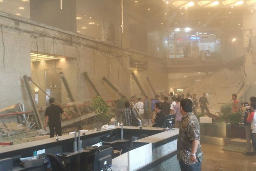 Pada Senin (15/1) sekitar pukul 12.10 WIB, bangunan kanopi lantai 1 Tower II BEI yang berlokasi di kawasan Sudirman itu ambruk hingga terdengar suara kencang.