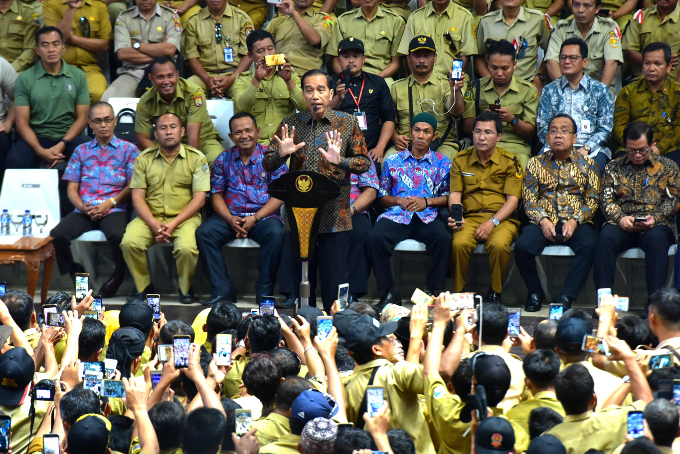 JAKARTA — Penghasilan perangkat desa kini setara dengan pendapatan Aparatur Sipil Negara (ASN) Golongan IIA. Hal itu ditegaskan Presiden Joko Widodo (Jokowi) saat menemui aksi para perangkat desa yang tergabung dalam Persatuan Perangkat Desa Indonesia (PPDI), di Istora Gelora Bung Karno, Jakarta, Senin (14/1/19) siang.