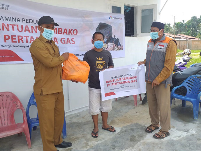 Pertagas bekerja sama dengan Rumah Zakat Aceh agar penyaluran bantuan tepat sasaran, dengan memberikan sebanyak 90 paket sembako berupa beras, mi instan, sarden dan obat-obatan lainnya. Tak lupa juga untuk tetap mengedukasi warga agar menerapkan pola hidup bersih dan menjaga kesehatan di masa pandemi Covid-19.
