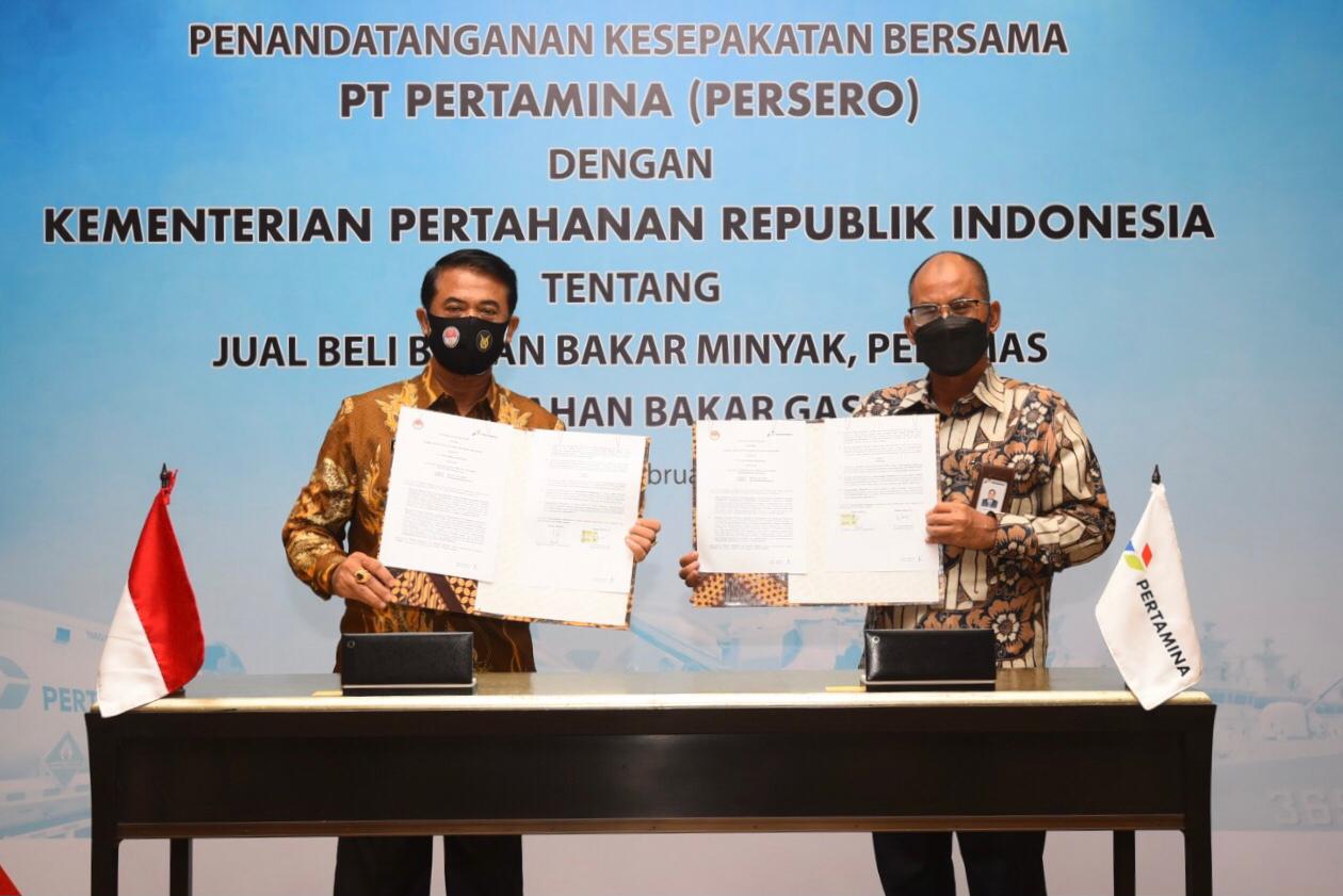 Pertamina berkomitmen untuk memenuhi kebutuhan energi Kementerian Pertahanan RI (Kemenhan) di tahun 2021. Komitmen itu direalisasikan melalui Penandatangan Kesepakatan Bersama Jual Beli Bahan Bakar Minyak (BBM), Pelumas, dan Bahan Bakar Gas (BBG) antara Kemhan RI dan PT Pertamina (Persero).