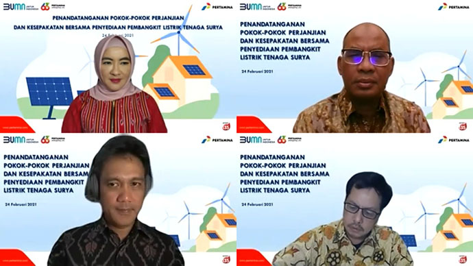 “Pertamina Group dan Subholding Power & New Renewable Energy (PNRE) telah menandatangani pokok-pokok perjanjian dan kesepakatan bersama terkait penyediaan Pembangkit Listrik Tenaga Surya (PLTS) di lingkungan Pertamina Group,” ujar Direktur Utama Pertamina, Nicke Widyawati dalam keterangannya, Kamis (25/2/2021).