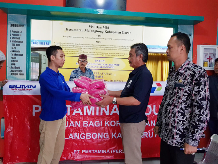 Seperti diketahui, banjir telah melanda sejumlah area di Malangbong dan berdampak pada 147 Kepala Keluarga (KK). Bantuan dari Pertamina secara resmi diserahkan oleh tim Pertamina Marketing Branch Bandung dan diterima oleh Camat Malangbong Teten Sundara di Kantor Camat Malangbong. “Untuk penyerahan bantuan ini kami juga berkordinasi dengan pihak dan aparat terkait agar tidak terjadi tumpang tindih bantuan. Tim kami di Marketing Branch Bandung juga siaga dalam melakukan pendataan dan penyerahan bantuan tersebut, langsung ke masyarakat,” tambah Dian.