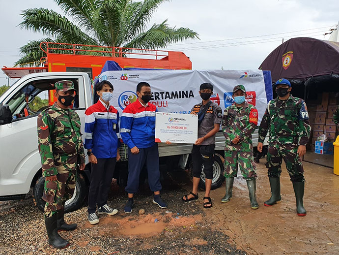 Pertamina sebelumnya telah membagikan ratusan paket ke beberapa posko bencana yang ada wilayah Kalimantan Selatan dan selalu berkoordinasi dengan BPBD Provinsi Kalsel untuk dapat memetakan bantuan dan kebutuhan korban banjir.