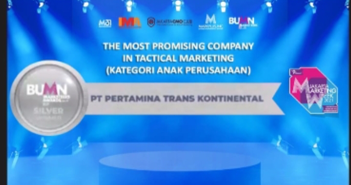 PT Pertamina Trans Kontinental (PTK) kembali menorehkan prestasi di BUMN Marketeers Award 2021. PTK meraih penghargaan “Silver” The Most Promising Company in Tactical Marketing, Kategori Perusahaa