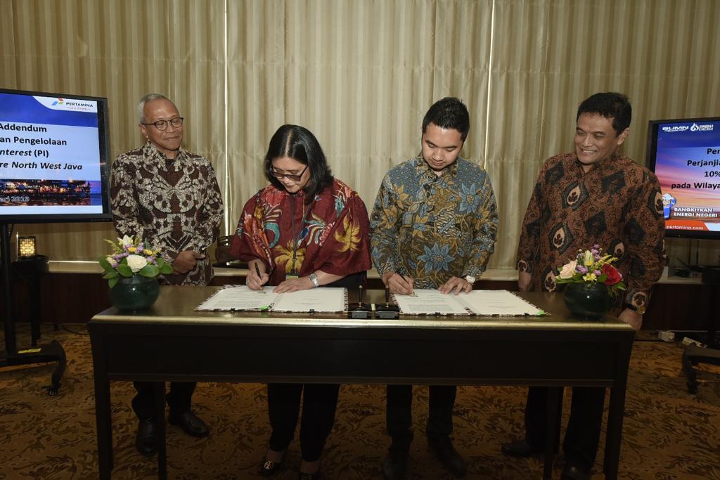 Penandatanganan dilakukan oleh Direktur Utama PHE ONWJ, Meidawati dan Direktur Utama MUJ ONWJ, Ryan Alfian Noor dan disaksikan oleh Direktur Hulu PT Pertamina (Persero), Dharmawan H. Samsu dan Plt. Kepala Dinas ESDM Jawa Barat, Dr. Ir. H. Yerry Yanuar, MM.
