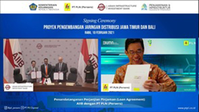 Proses penandatanganan sendiri dilakukan secara daring oleh Direktur Utama PLN, Zulkifli Zaini, Vice President Investment Operations AIIB, D.J. Pandian, Acting Director General Asian Investment Infrastructure Bank, Rajat Misra, Direktur Jenderal Pengelolaan Pembiayaan dan Risiko Kementerian Keuangan (Kemenkeu), Luky Alfirman, dan Direktur Utama PT Penjaminan Infrastruktur Indonesia, Muhammad Wahid Sutopo, Rabu (10/2).