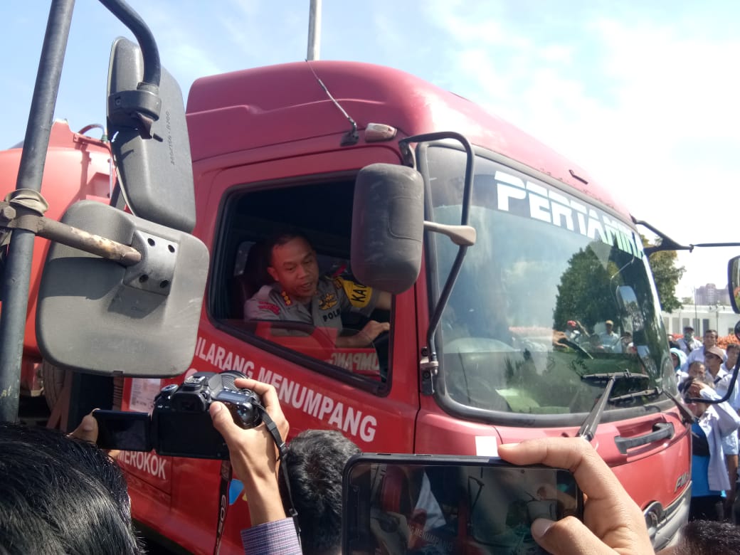 “Ternyata mobil tangki ada di seputaran lapangan Monas, lalu kita koordinasi dengan Polres Metro Jakarta Pusat,” papar Budhi.