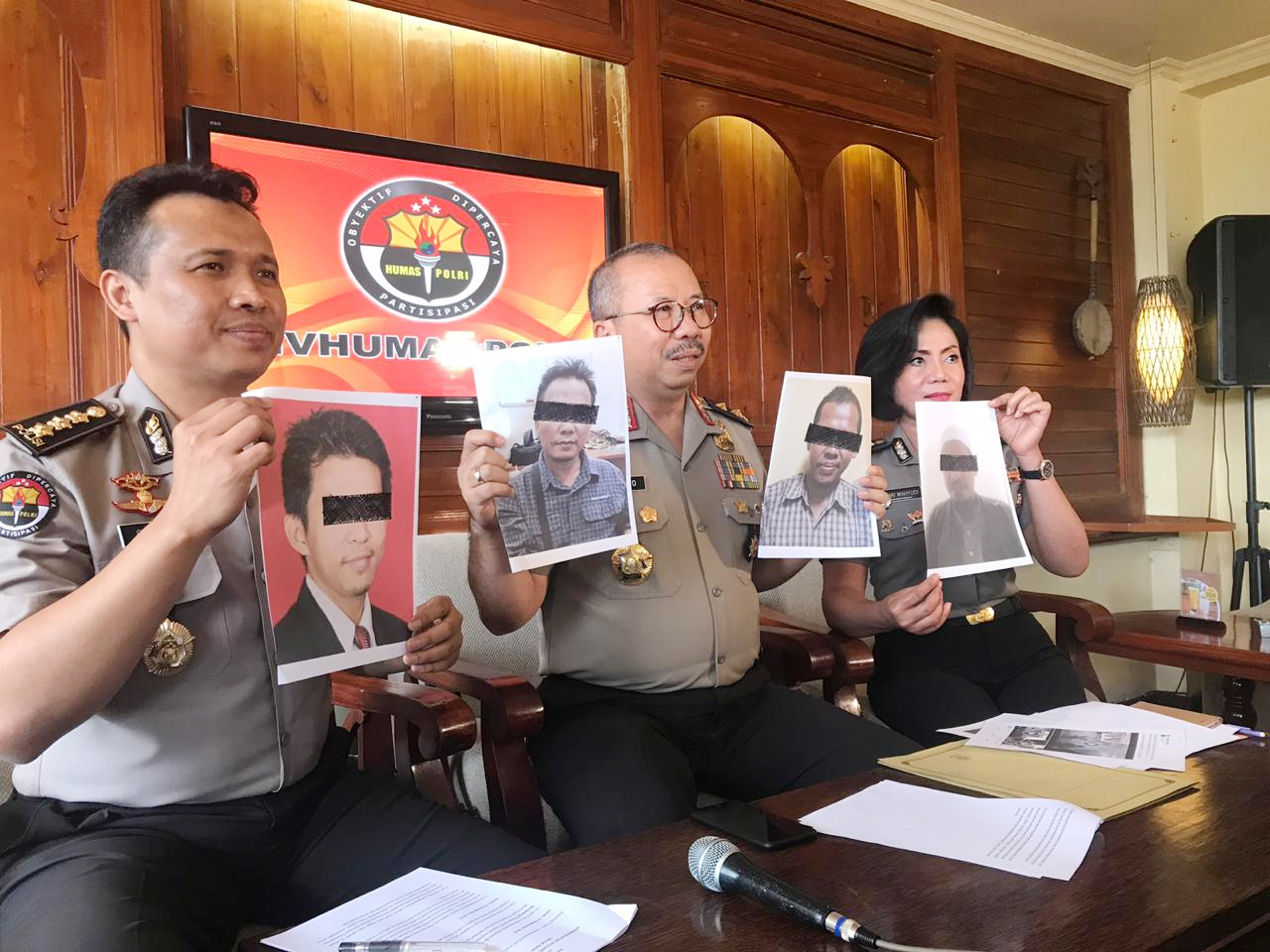 Dalam konferensi pers di Markas Besar Kepolisian Republik Indonesia (Mabes Polri), Senin (17/9/2018), Kepala Divisi Humas Irjen Pol Drs Setyo Wasisto SH menyebut keempat tersangka berinisial GGG, SAA, MY, dan N.