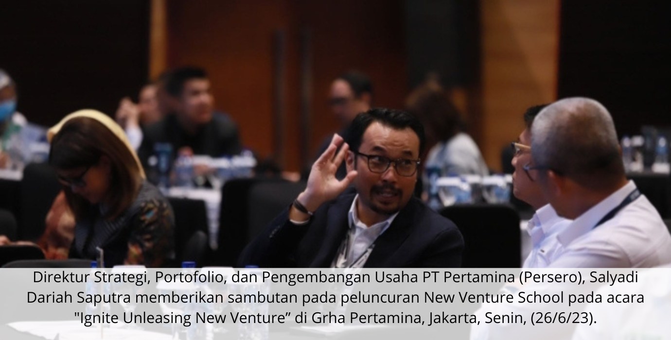 “Banyak Perwira Muda Pertamina yang haus untuk menuangkan idenya menjadi sebuah produk atau layanan yang berguna untuk Pertamina dan Indonesia. Ke depan, adanya transisi energi membuat ide-ide dan riset sangat penting untuk meningkatkan kinerja Pertamina sebagai perusahaan migas, terutama pada energi baru dan terbarukan. Inovasi ini juga diharapkan dapat berkembang ke industri lainnya,” jelas Salyadi saat membuka kegiatan Peluncuran New Venture School, pada acara “Ignite Unleashing New Ventures Pertamina”, di Jakarta, Senin 26 Juni 2023.