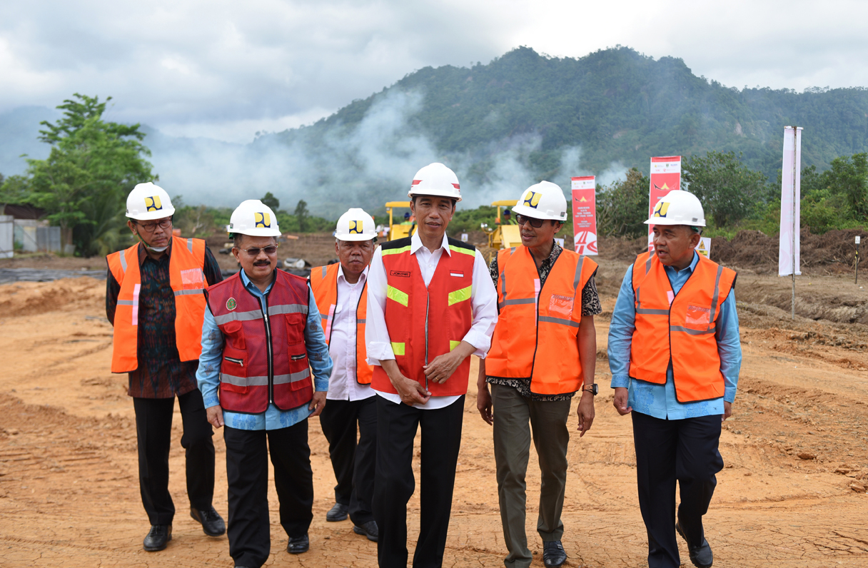 Presiden mengatakan waktu tempuh yang makin pendek, saat melakukan groundbreaking pembangunan jalan tol Padang-Pekanbaru tahap pertama yang menghubungkan Padang-Sicincin di Jalan Bypass Kilometer 0 Padang, Sumatera Barat, Jumat (9/2) siang.