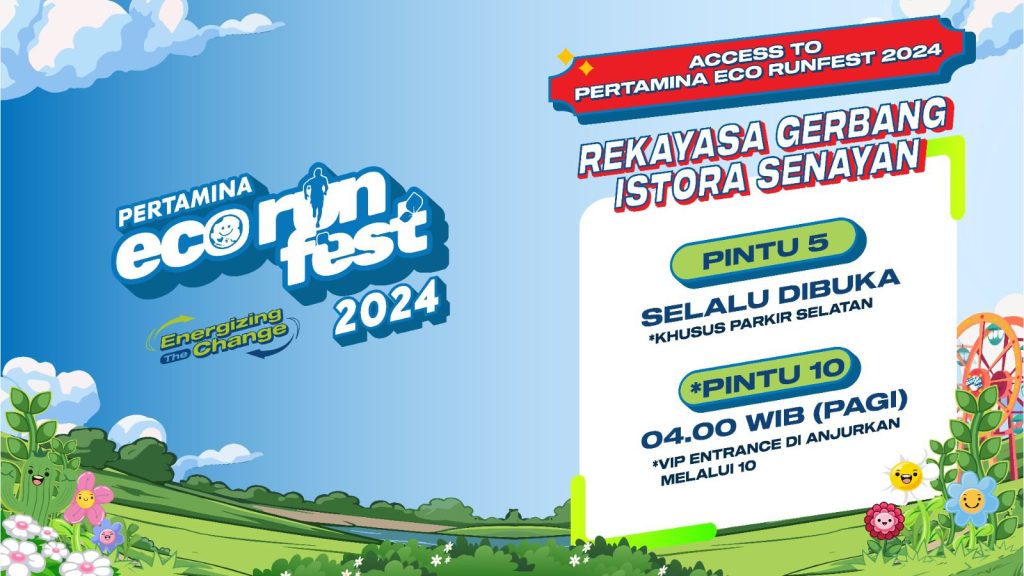 “Akses peserta dan pengunjung, dapat melalui pintu 5 GBK Senayan yang dibuka sepanjang waktu, khusus pintu 2 dan pintu 10 GBK akan dibuka mulai pukul 04.00 WIB, lokasi start dan finish Eco Run terletak di pintu tenggara GBK,” terang Fadjar.