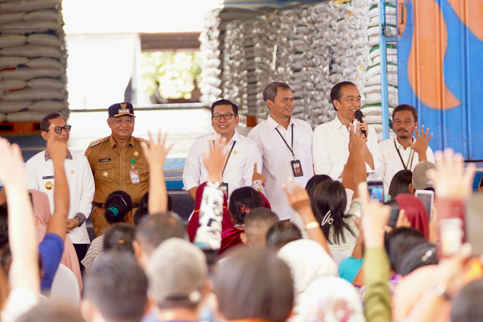 Kupang, hotfokus.com Presiden Joko Widodo (Jokowi) menyambangi warga penerima bantuan pangan di gudang Bulog Alam Kota, Kupang, Rabu (6/12/2023). “Ini sudah terima semuanya...