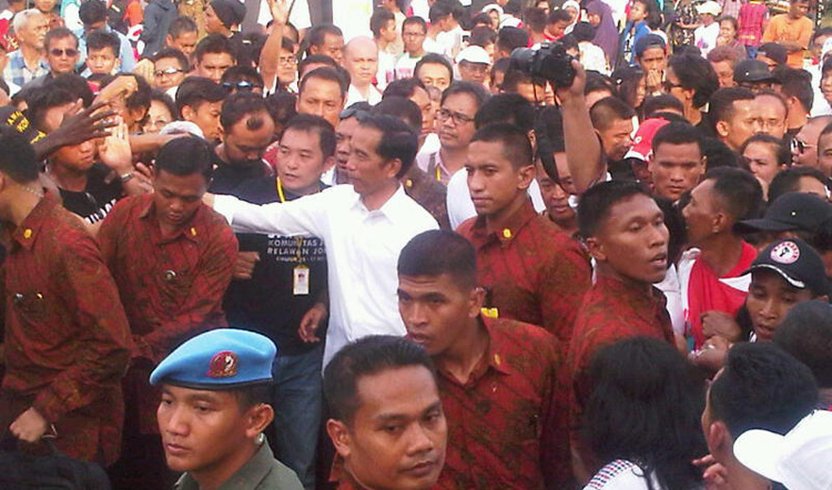 ROTE — Presiden Joko Widodo (Jokowi) tidak dapat menyembunyikan kegembiraannya saat Pesawat Kepresidenan RJ-85 mendarat di Bandar Udara DC Saudale, di Pulau Rote,...