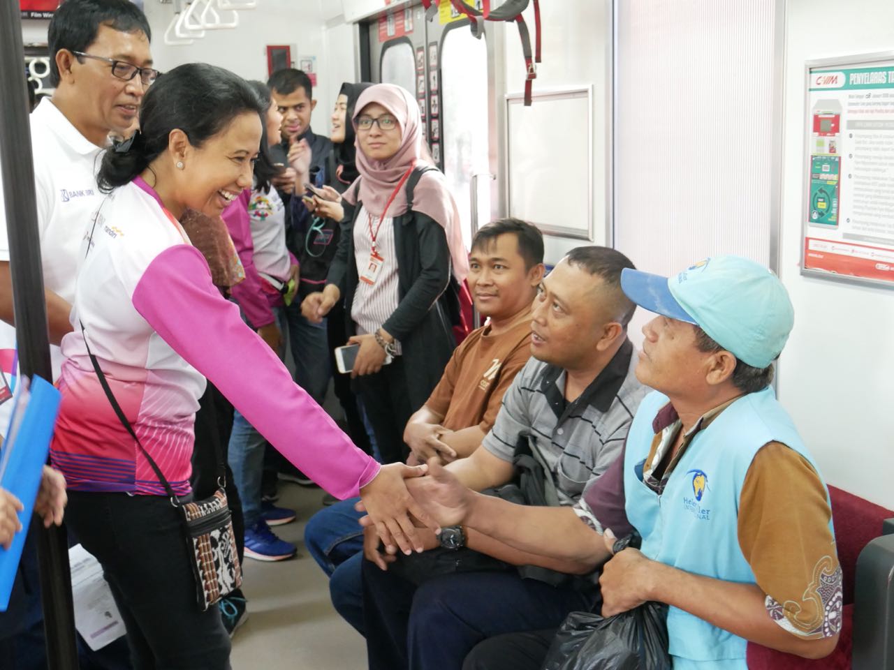 Di sepanjang perjalanan menuju Stasiun Bogor, Menteri Rini juga menyempatkan bercengkrama dengan para penumpang. Tak hanya itu, Rini juga memberikan kuis kepada penumpang dengan hadiah uang elektronik keluaran Bank Himbara.